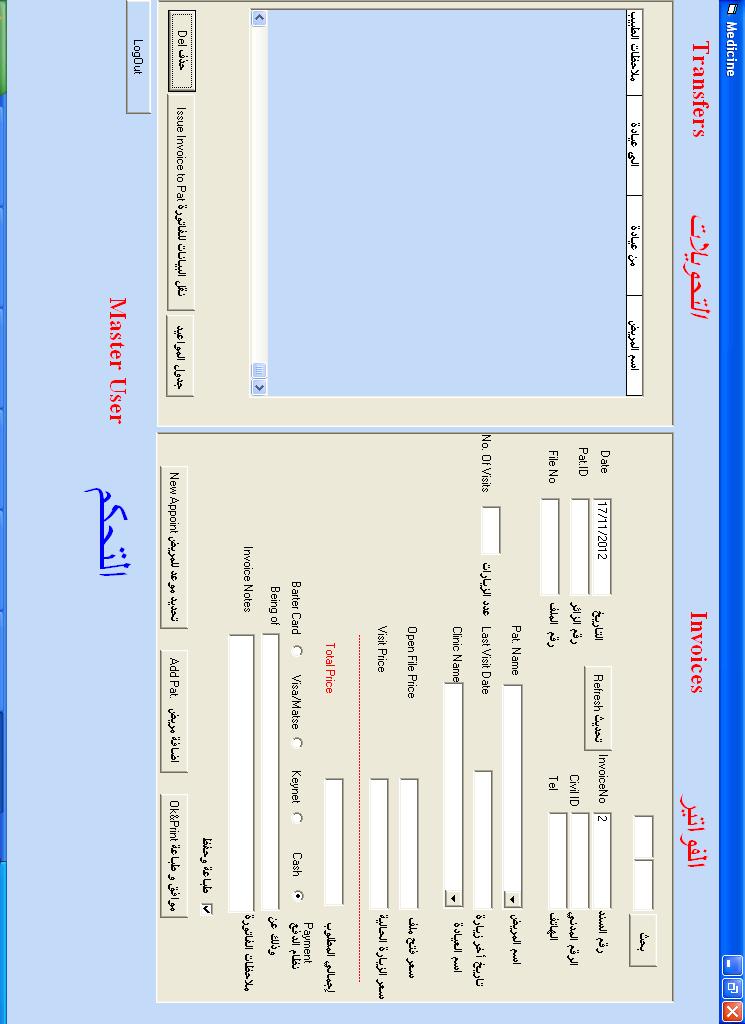 وقت متابعة جميع الإيرادات فى المستوصف وكذلك حسابات النقدي والفيزا كارد والكي نت